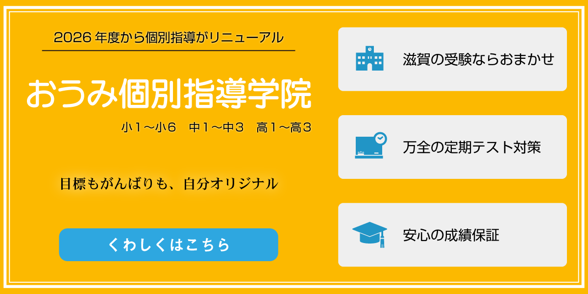 おうみ進学プラザの先生たちからのメッセージ、最新の入試問題、ローカル塾のこだわりが織り込まれています。