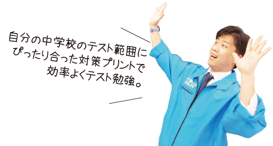 地域密着のローカル塾ならではの中学校別教科書準拠型テスト対策。