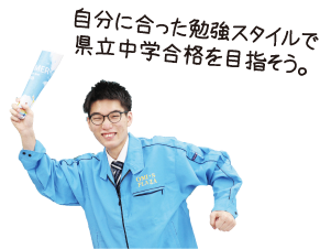 「県立中高一貫校」のこと。中学・高校の6年間を見通したカリキュラムが組まれていて、普通の中学ではみかけない「英語ディベート」や「数学サイエンス」などの特徴的な授業があるんだよ。「県立」だから滋賀「県」が運営している中学校ってことだね。