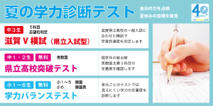 現学年で習ったところまでの定着度を測って夏に向かいましょう。 テストで見つけた課題に、夏の講習会で取り組むのがベスト。長期休みは目的をもって勉強をしやすい期間です。まずはこの学力診断テストから。 滋賀V模試(県立入試型) […]