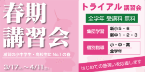3/3(火) 新年度スタート! 入塾説明会では、おうみ進学プラザ授業のシステムと合わせて、最新の入試や地域の小中学校に関する情報をお伝えします。また、学力診断テスト(無料)では、お子さまの現在の学力を診断して、学習課題と […]